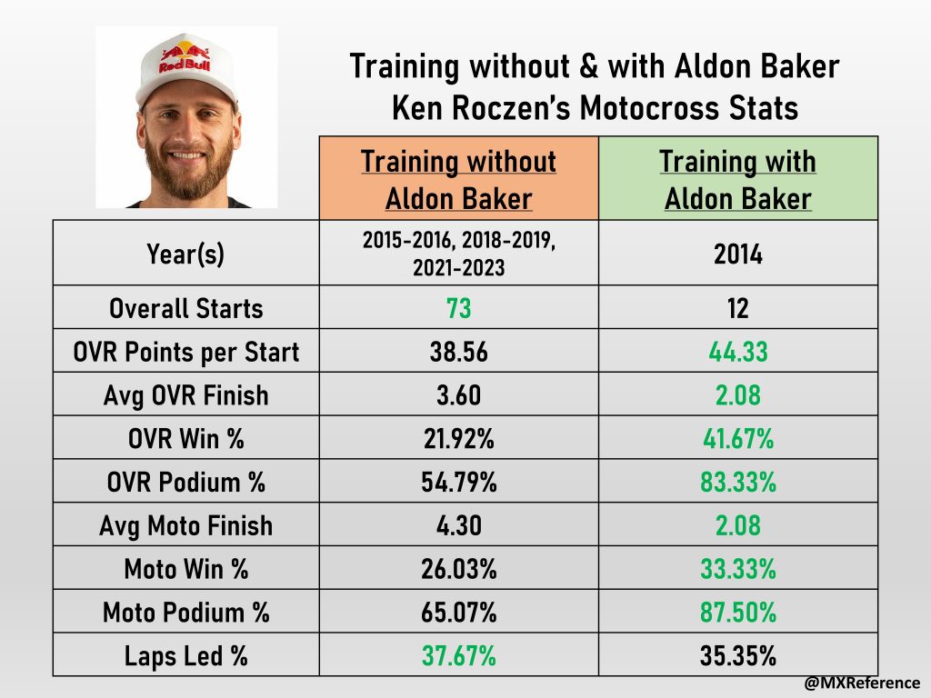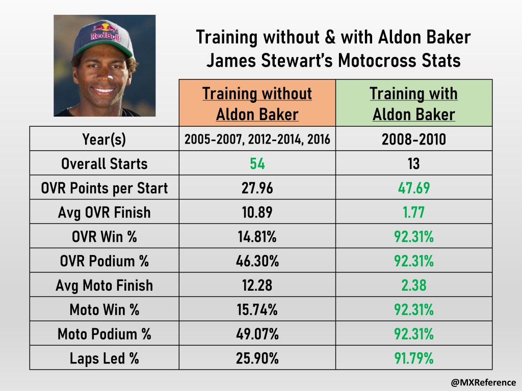 For RC, there is actually nothing to compare. All of his Motocross seasons were while he trained with Aldon Baker.