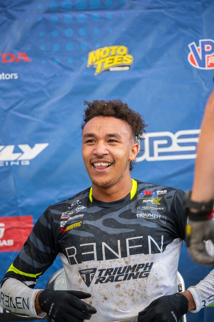 Jalek Swoll: Did Jalek just sell Triumphs like Hunter sold Hondas? BOOM, sucka! Yes, he did! This is a pretty freaking huge deal for Triumph and Jalek. This kid is fun to be around, likes to talk crap, but when it comes time to grind, he will grind. He also has been staying on the bike (not crashing) which is helping his results as well as confidence. Again, he kind of got gifted that podium but you have to be in it to podium and the kid did just that. He put himself in good positions all day and was rewarded with his first podium of the year. Plus a nice bonus I am sure! Also, I know that I am close to this motorcycle, but it takes A LOT of people to make this happen. Jalek is the key piece to the puzzle but there are guys back in Georgia that should be proud of what just went down at Unadilla. PS. I could have used a better photo of J-Swoll, but he hugs my wife too long when he sees her so I decided on this photo! You’re welcome, people.