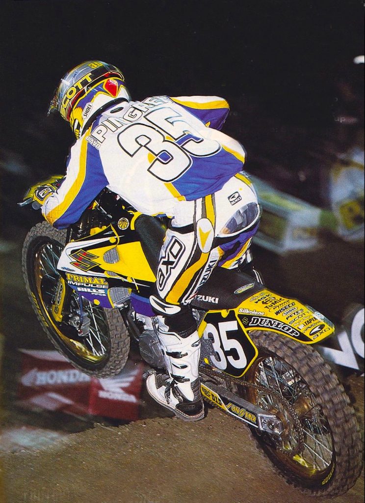 While Travis Pastrana garnered the majority of Suzuki’s press in the 125 class he was far from their only star in 2000. Primal Impulse’s David Pingree put his RM125 consistently at the front winning Anaheim One and missing out on the 125 West Supercross title by a mere 2 points to Pro Circuit’s Shae Bentley. Photo Credit: Motocross Action