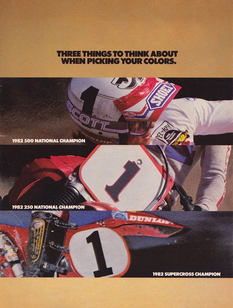 Honda had a great year in 1982 winning the 250 Supercross, 250 Motocross, and 500 National Motocross championships. Photo Credit: Honda