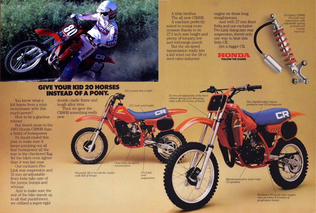An all-new CR60R and liquid-cooled CR80R filled out Honda’s motocross lineup for 1983. Photo Credit: Honda