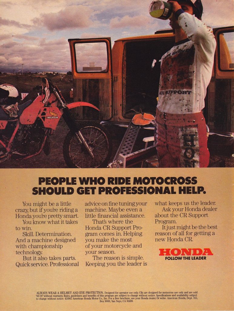 For this edition of Classic Ink, we are going to take a look back at an ad for Honda’s awesome motocross lineup for 1983.